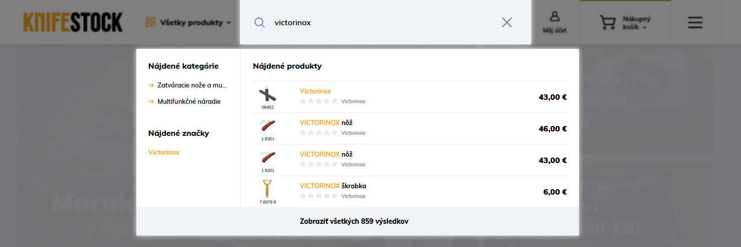 För en snabb och bekväm sökning, skriv in produktens namn, kod eller EAN-kod i sidans sökmotor, eller ibland räcker det med en del av den, som till exempel de första bokstäverna, och den sökta produkten visas i utbudet. Om det finns en annan variant av produkten eller en kombination med en annan typ av produkt i utbudet, visas en lista där du kan välja den typ av produkt som intresserar dig mest i det angivna utbudet.