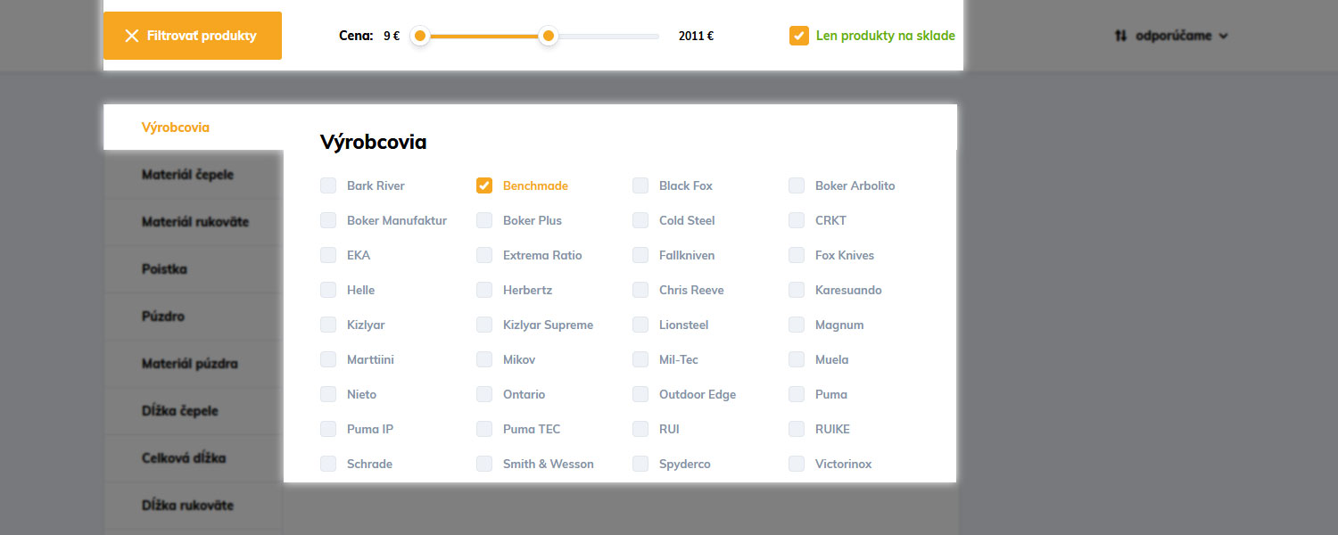 För en mer detaljerad val av specifika produkter kan du välja filtret "Filtrera produkter" som visas på vänster sida i den angivna underkategorin ovanför de visade produkterna. Där kan du precisera ditt val baserat på pris, märke och andra parametrar som tillhör produkterna i den angivna kategorin.