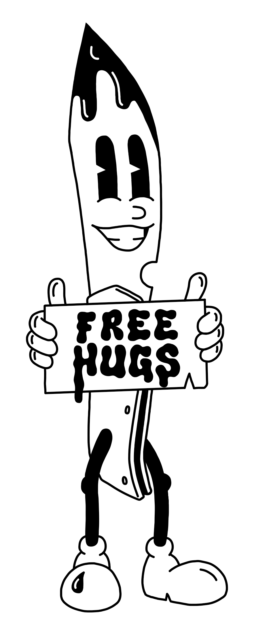 I mitt personliga liv är humor bokstavligen ett överlevnadsverktyg och återspeglas naturligt i mitt skapande. Jag är glad att få arbeta med människor som ser till att det aldrig saknas humor, parodi, mod, autenticitet och en nypa galenskap. Tack vare det är idéerna praktiskt taget oändliga – och känslan när en designer ser sin grafik på en kniv eller ett föremål är ovärderlig.