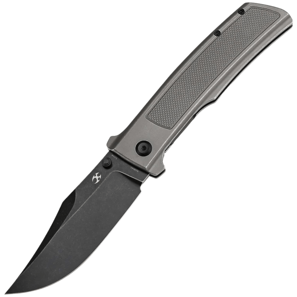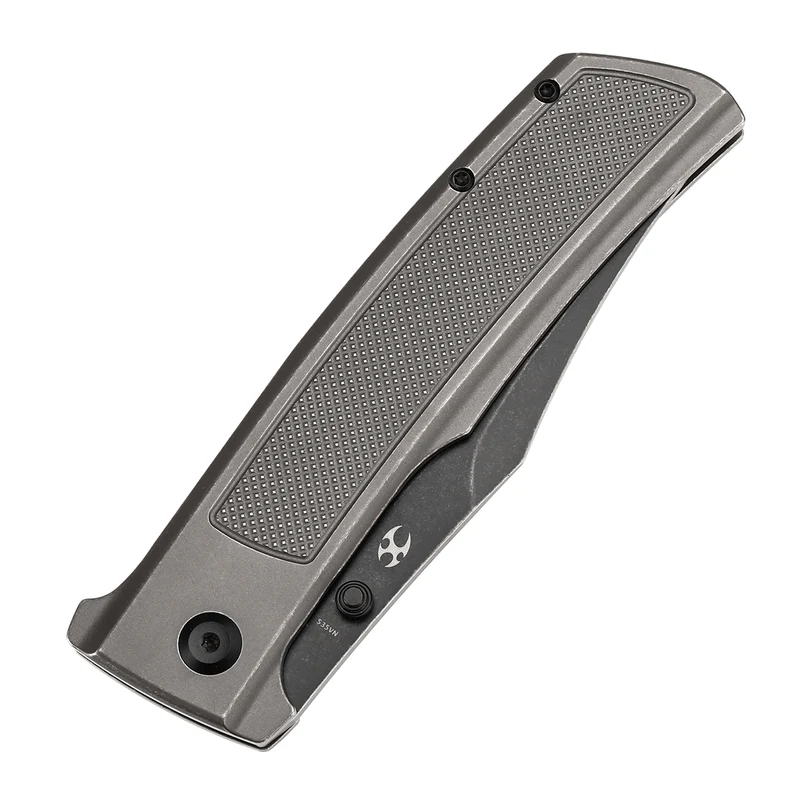 Handtaget är tillverkat av titan, med fasade kanter för ett bekvämt grepp. Det har också en design med dubbla ytbehandlingar, vilket förbättrar både estetik och funktionalitet. Handtagets topp inkluderar ett korsskydd, som effektivt förhindrar att handen glider mot bladet under användning.