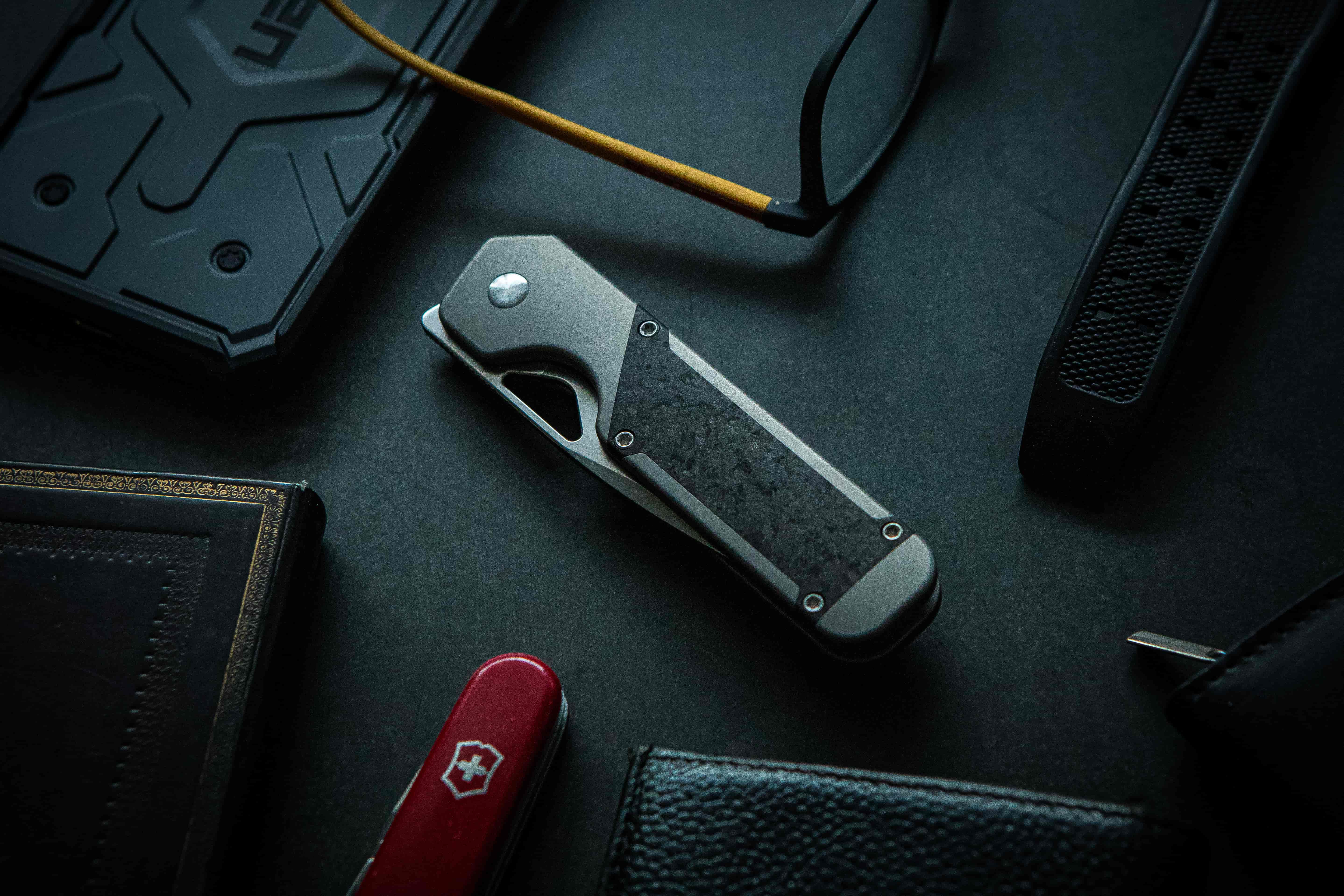På knivens handtag användes också premiummaterial som titan och marmorerad kolfiber (Marbled Carbon Fiber), vilket ger kniven ett attraktivt och modernt utseende.