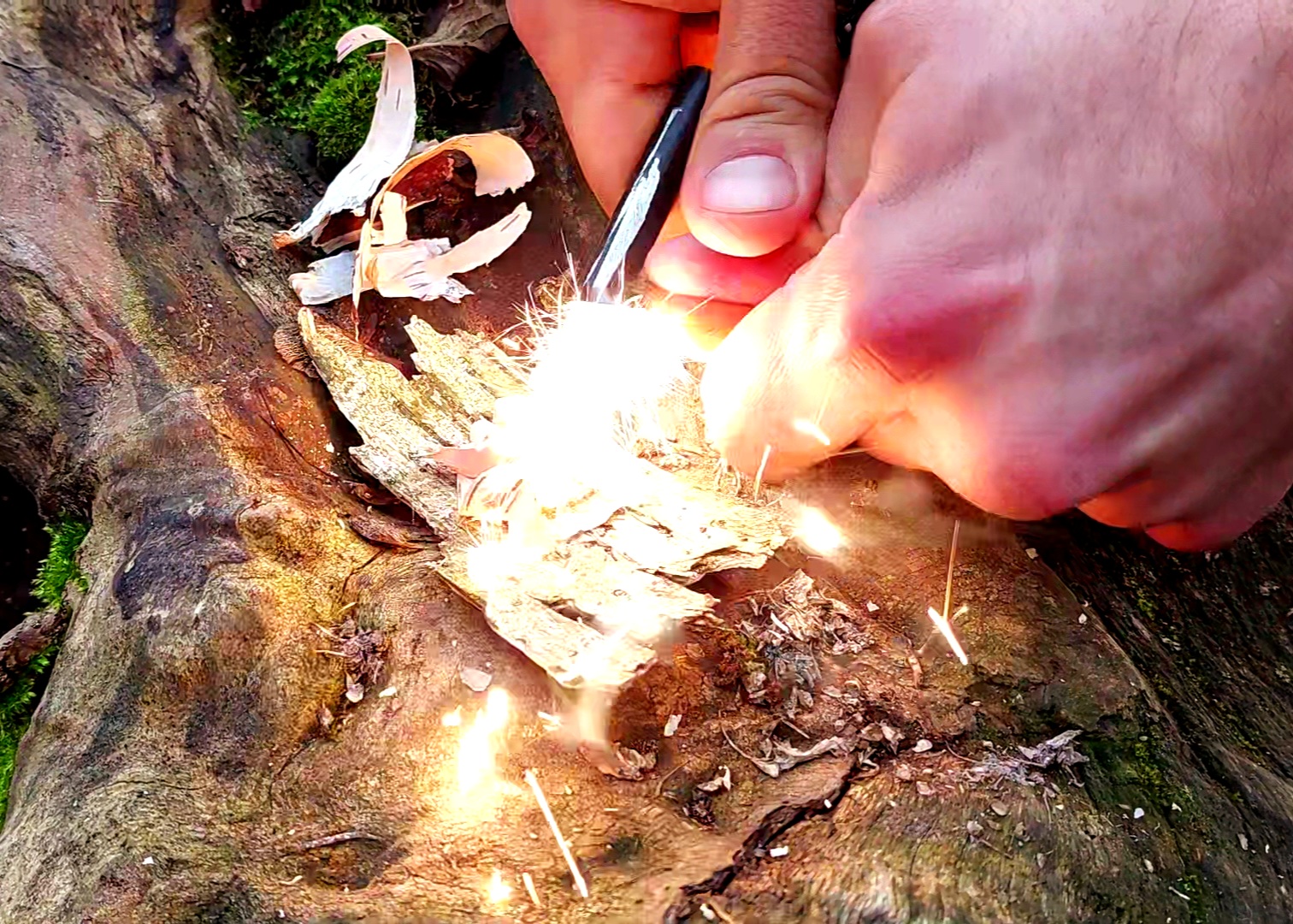 Handtaget döljer en väderbeständig svensk FireSteel, kapabel att producera gnistor upp till 3 000 slag vid 5 400 °F/2 980 °C, vilket tänder din eld även i de mest utmanande miljöerna. När den är utsliten kan den enkelt bytas ut mot en ny påfyllning, vilket håller dina gnistor ljusa och dina eldar brinnande.